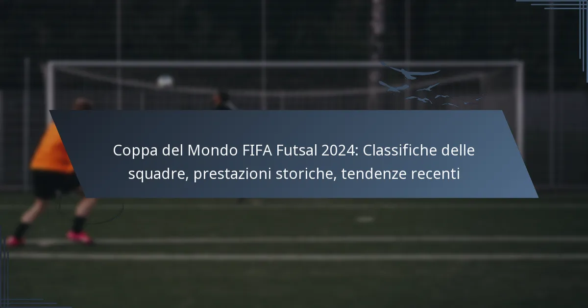 La Coppa del Mondo di Futsal FIFA 2024 si appresta a mettere in mostra le migliori squadre nazionali, con le attuali classifiche che riflettono le loro recenti prestazioni e influenzano il sorteggio del torneo. Storicamente, Brasile e Spagna hanno dominato la competizione, ma tendenze emergenti come innovazioni tattiche e sviluppi dei giocatori stanno rimodellando il panorama mentre le squadre si preparano per l’evento imminente.